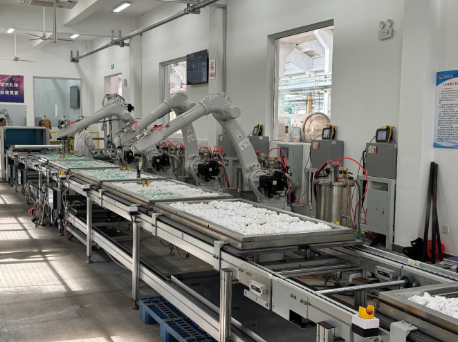 同样在纺织领域,科技的活力也延伸至千年非遗技艺。走进江苏华艺时装集团的生产车间,一场“数智”与“手工”的对话正在上演。机械臂根据预设指令,在白色织物上精准点染,色彩均匀晕开,分毫不差。