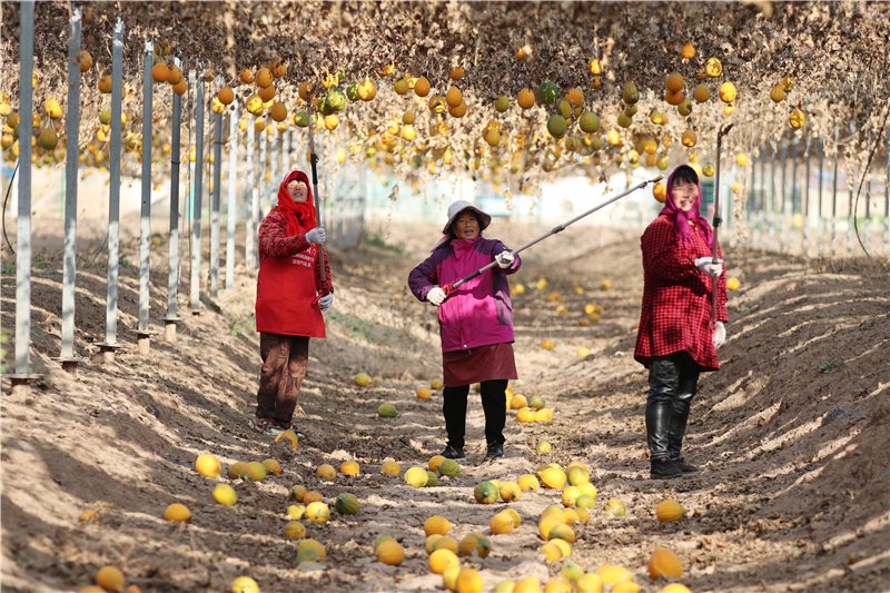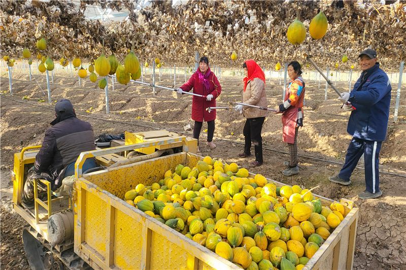 12月9日,江苏省连云港市灌云县杨集镇利华村,村民忙着收获成熟的瓜蒌,田间地头一片丰收景象。