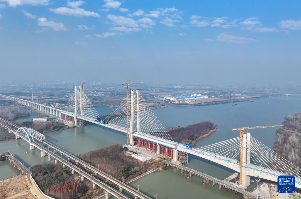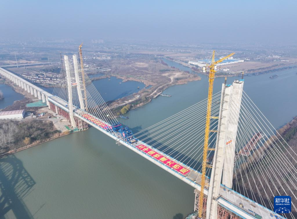 12月19日,由中国铁建大桥局承建的沪渝蓉高铁通泰扬特大桥跨京杭运河斜拉桥顺利合龙,通泰扬特大桥控制性工程取得突破性进展。本次合龙的跨京杭运河斜拉桥位于江苏扬州,全长564.3米,主跨300米,主塔高128米,桥面距离航道水位约30米。