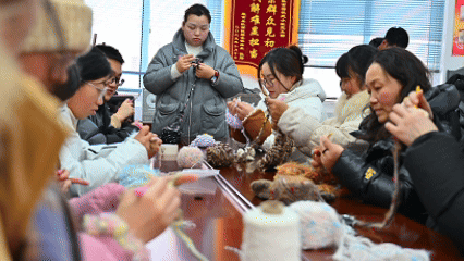 1月19日,江苏沭阳下起大雪,当地两座社区党群服务中心里十分热闹,“市民学校 花乡课堂”活动正在开展,钩针编织和剪纸技艺吸引了不少居民到现场学习。