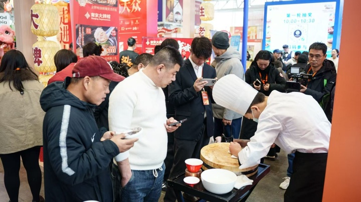 三是聚焦场景打造。南京大牌档、古南都集团、小厨娘集团等重点企业设置特装展区,重点展示南京餐饮特色。古南都集团特展区带来秦淮八绝、金陵叉烤鸭等南京经典美食,旗下老字号企业加起来近一千岁;南京大牌档特展区把古色古韵的店铺带到现场,并带来美龄粥、麻辣鸭血等特色小吃,店铺还走出国门将南京美食带到了新加坡等世界各地;小厨娘集团特展区现场展示3种绝活豆腐刀工(白玉牡丹、文思豆腐、菊花豆腐),旗下品牌龙吟山房于去年4月入选江苏省首批米其林餐厅,并于近期入选黑珍珠二钻餐厅。此外,特装展区在现场设置直播,打造“主播带货+店铺主理人推荐”模式,市集所有展位支持现场品鉴与销售,推动即时转化,同时借助直播矩阵,实现“线下体验、线上下单”,扩大销售半径,延续活动热度。