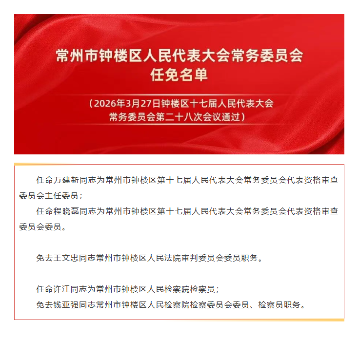 常州市钟楼区人事任免